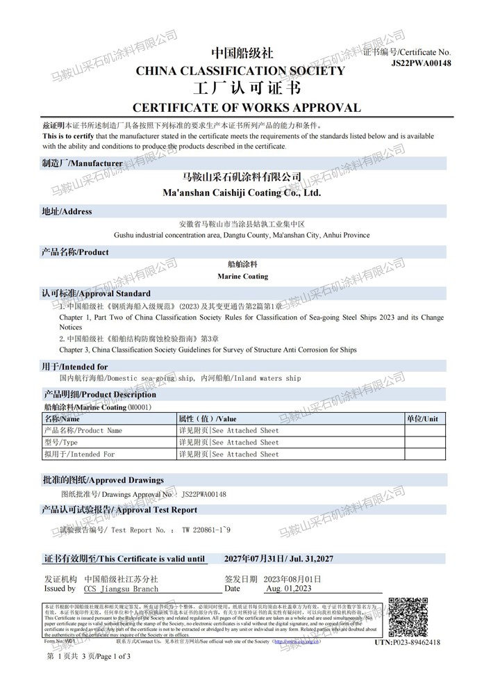 - 2024-09-23馬鞍山采石磯涂料有限公司 2023 年度溫室氣體排放核查報(bào)告